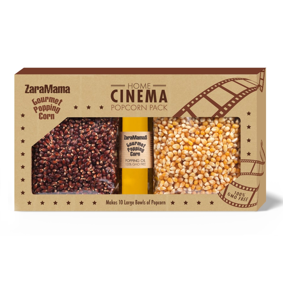 The Home Cinema Pack contains 2 of Zaramama’s most popular varieties of popping corn, and a 150ml bottle of Popping Oil. Our popping oil is UK grown, cold pressed, extra virgin rapeseed oil. This has a light nutty flavour and a high smoke point, making it ideal for poping corn.