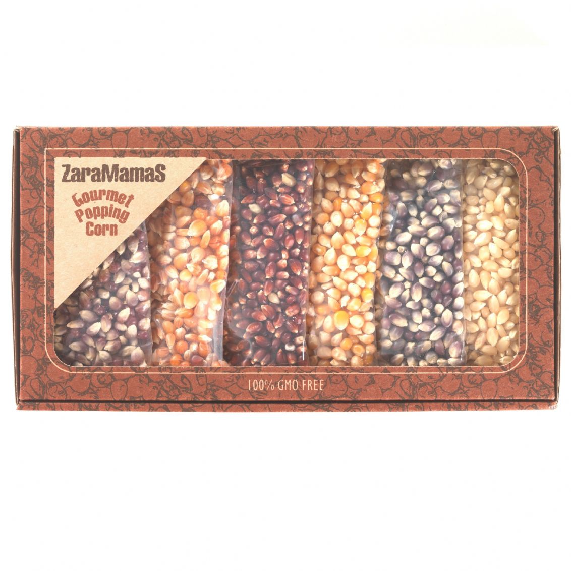 Six assorted 90g bags of our gourmet popping corn in an attractive gift box. Treat yourself or a friend!